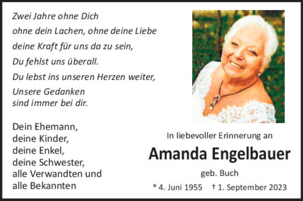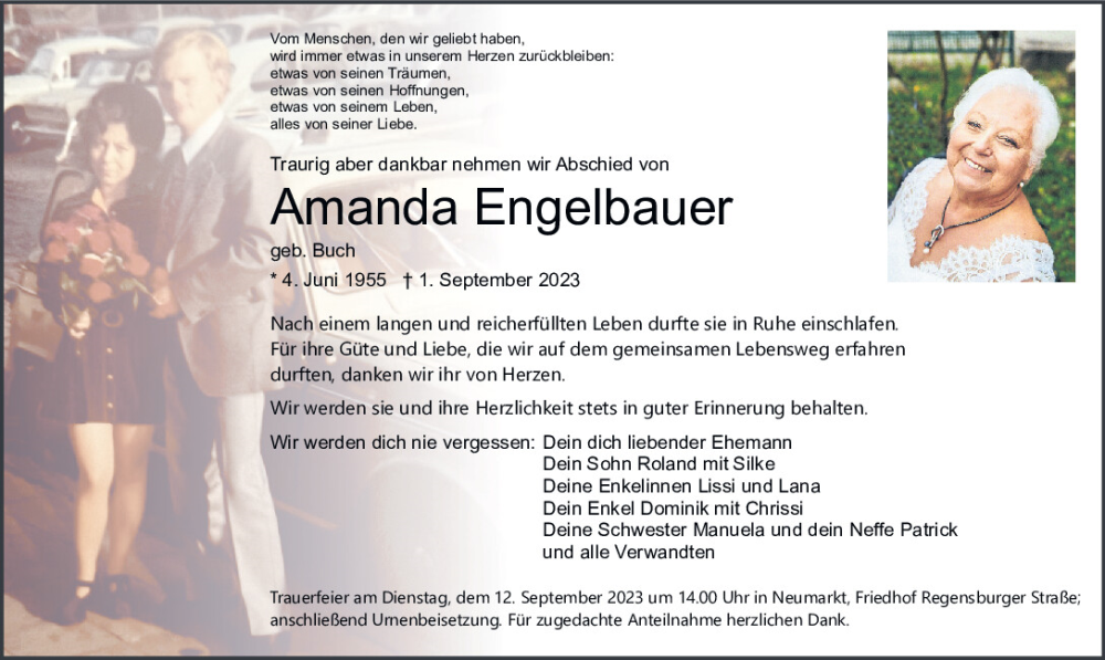 Hier finden Sie alle Traueranzeigen aus der Zeitung, die bisher für Amanda Engelbauer erschienen sind.
