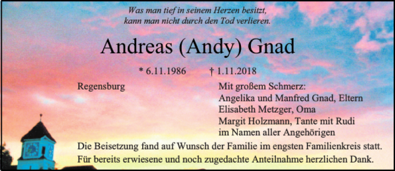Hier finden Sie alle Traueranzeigen aus der Zeitung, die bisher für Andreas Gnad erschienen sind.