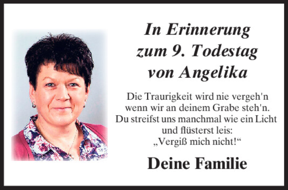 Hier finden Sie alle Traueranzeigen aus der Zeitung, die bisher für Angelika erschienen sind.