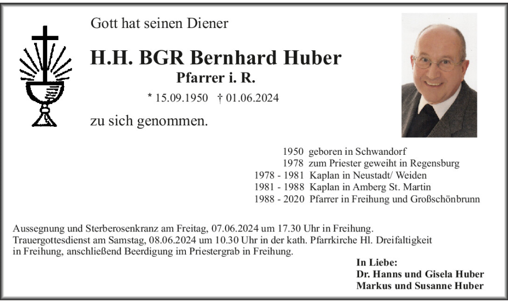 Hier finden Sie alle Traueranzeigen aus der Zeitung, die bisher für Bernhard Huber erschienen sind.