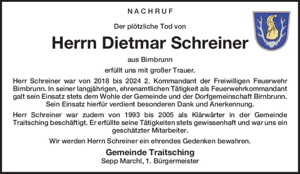Hier finden Sie alle Traueranzeigen aus der Zeitung, die bisher für Dietmar Schreiner erschienen sind.