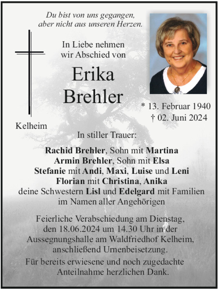 Hier finden Sie alle Traueranzeigen aus der Zeitung, die bisher für Erika Brehler erschienen sind.
