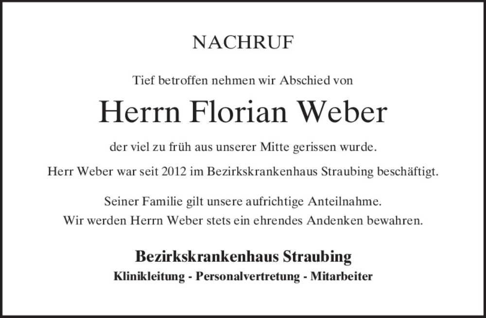 Hier finden Sie alle Traueranzeigen aus der Zeitung, die bisher für Florian Weber erschienen sind.