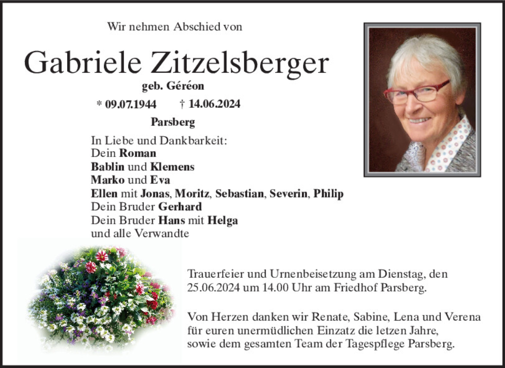 Hier finden Sie alle Traueranzeigen aus der Zeitung, die bisher für Gabriele Zitzelsberger erschienen sind.