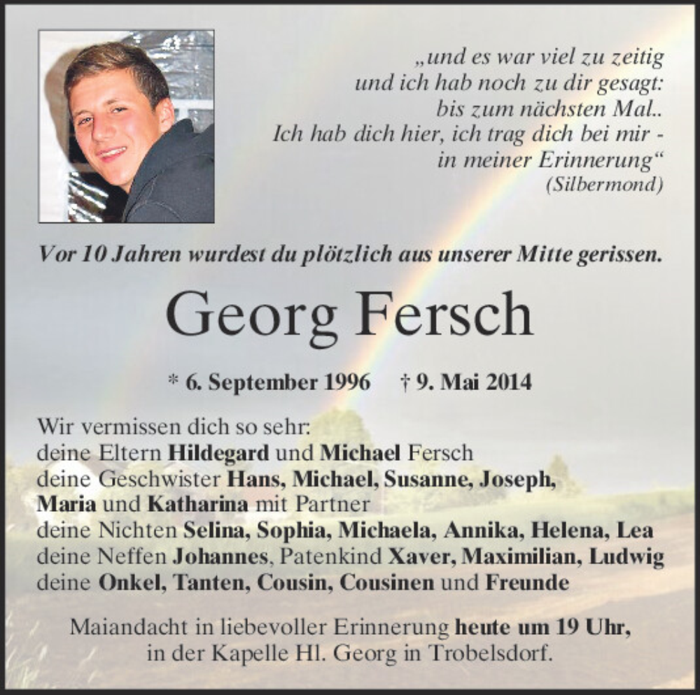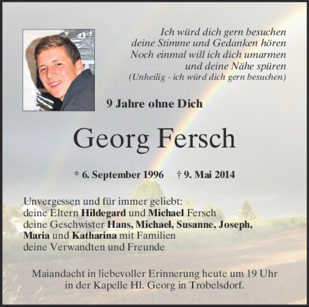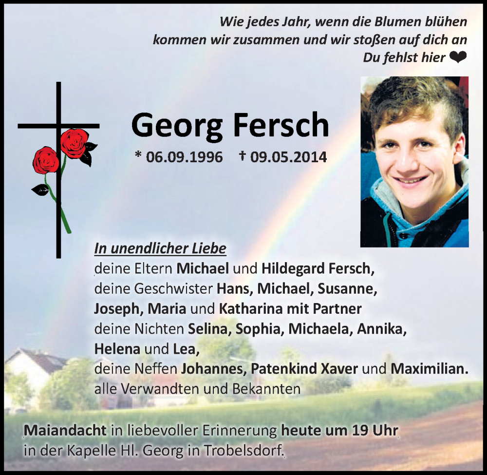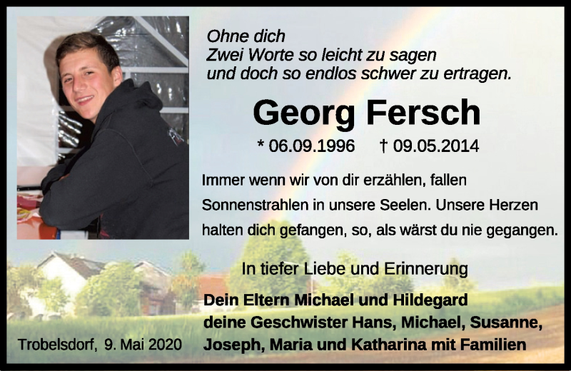 Hier finden Sie alle Traueranzeigen aus der Zeitung, die bisher für Georg Fersch erschienen sind.
