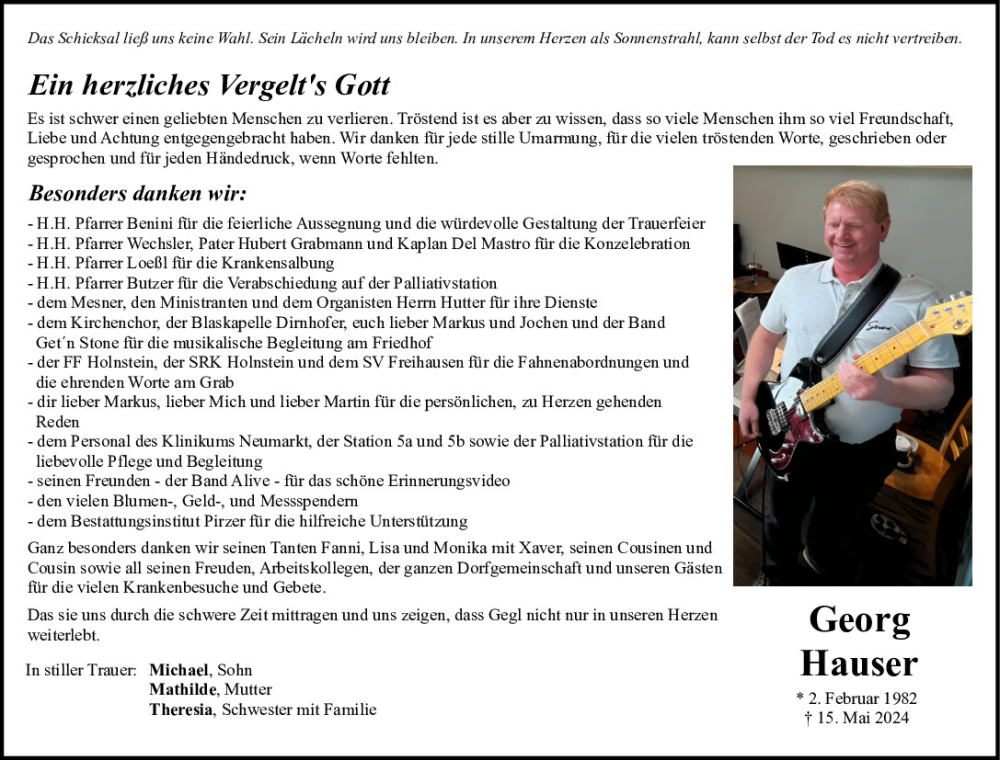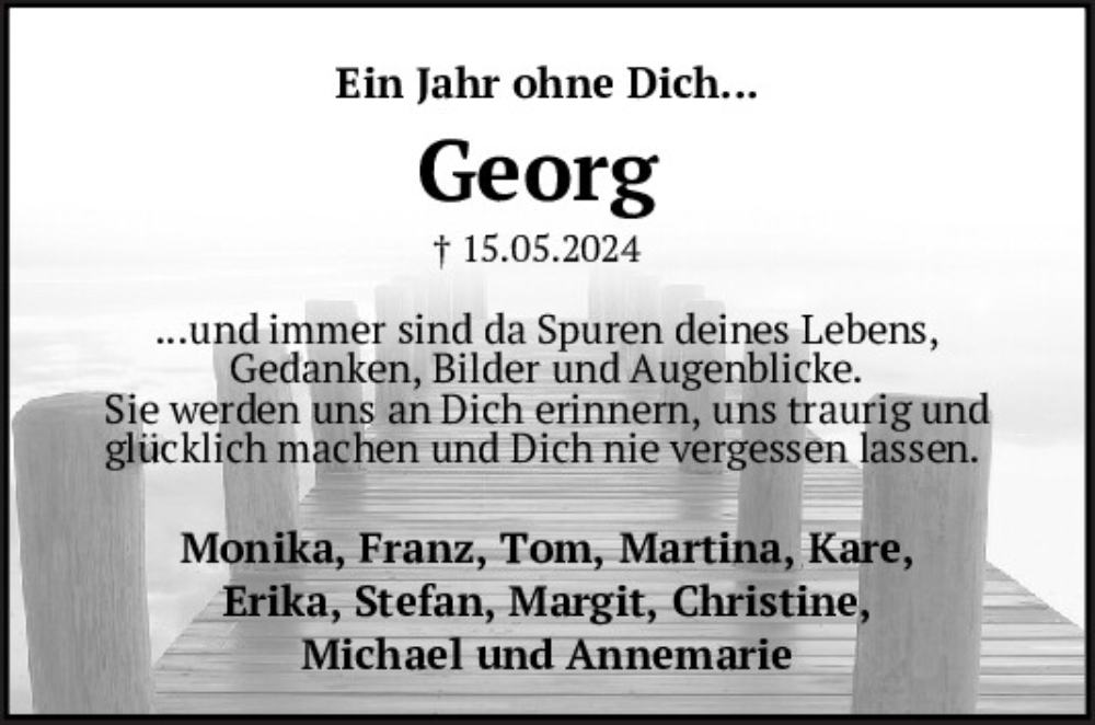 Hier finden Sie alle Traueranzeigen aus der Zeitung, die bisher für Georg Hauser erschienen sind.