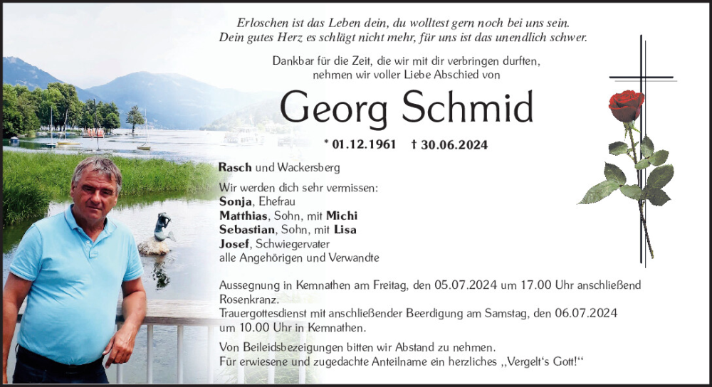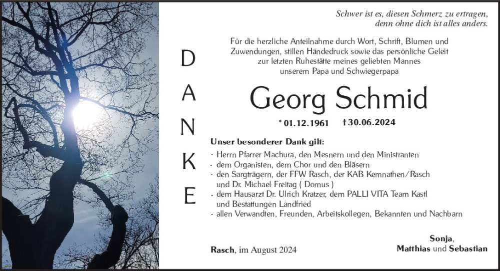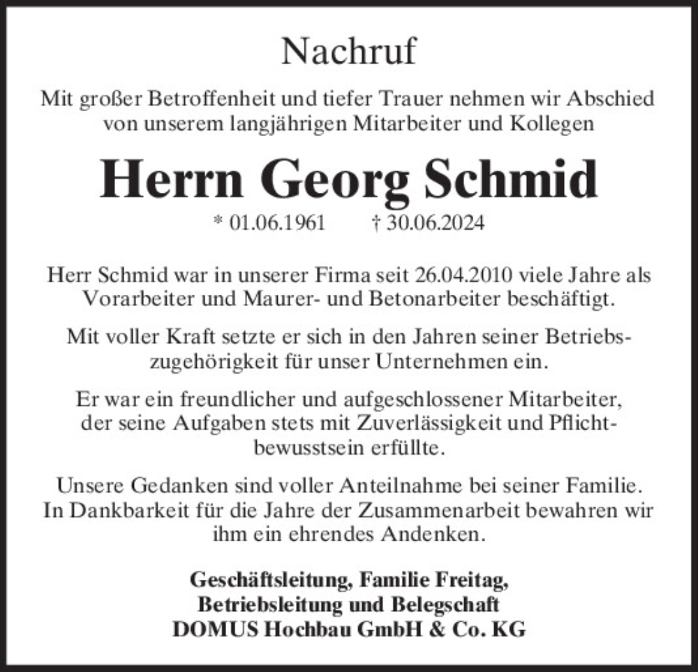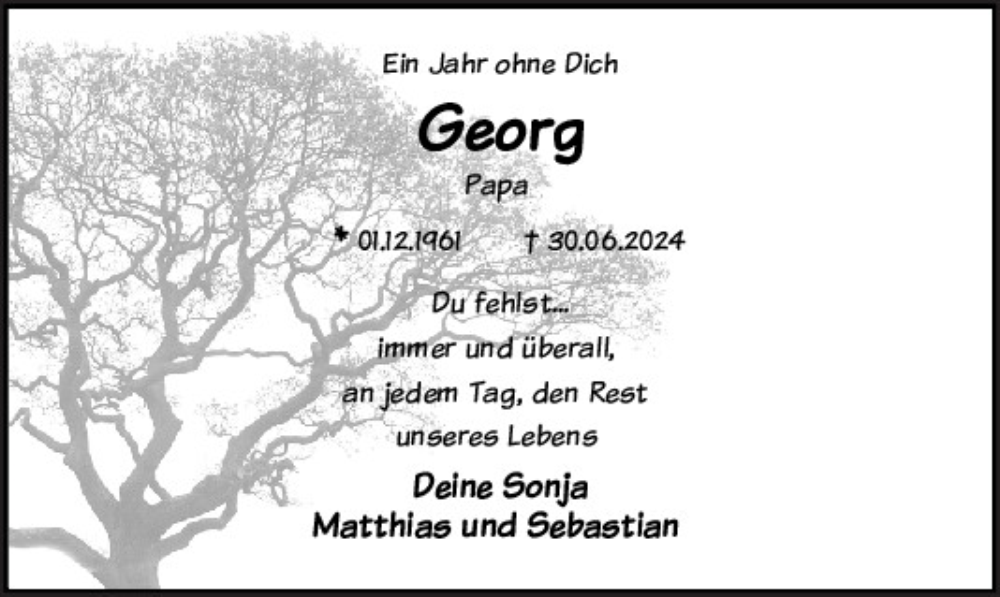 Hier finden Sie alle Traueranzeigen aus der Zeitung, die bisher für Georg Schmid erschienen sind.
