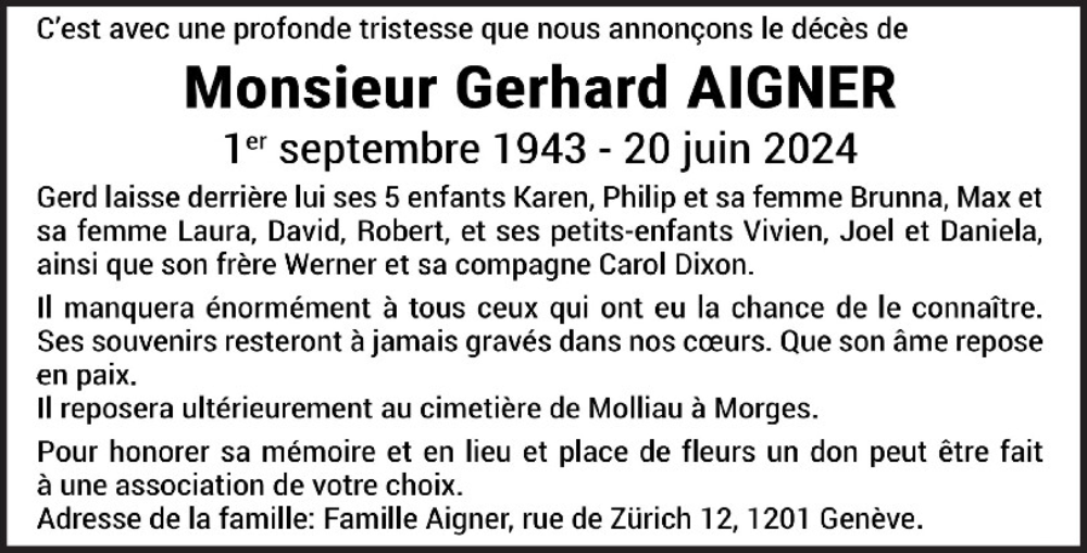 Hier finden Sie alle Traueranzeigen aus der Zeitung, die bisher für Gerhard Aigner erschienen sind.