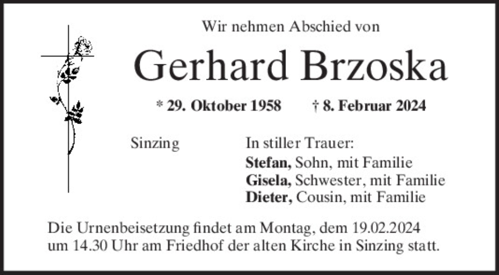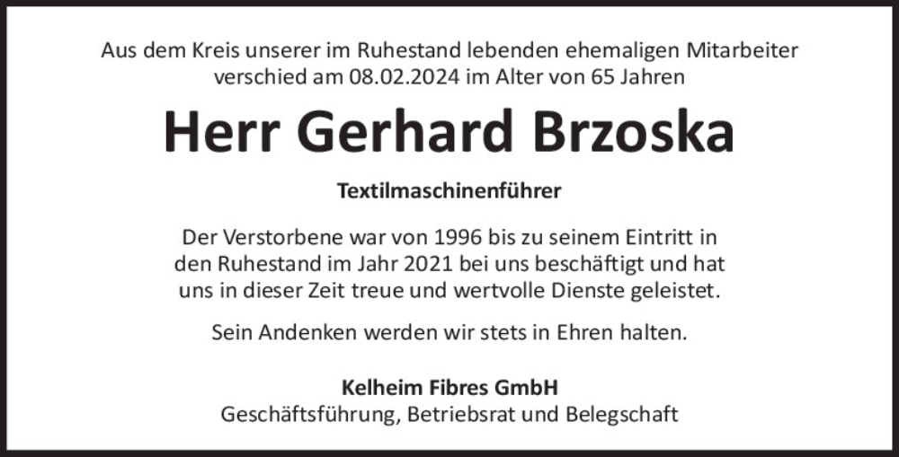 Hier finden Sie alle Traueranzeigen aus der Zeitung, die bisher für Gerhard Brzoska erschienen sind.