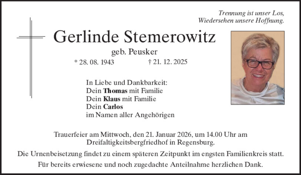 Hier finden Sie alle Traueranzeigen aus der Zeitung, die bisher für Gerlinde Stemerowitz erschienen sind.