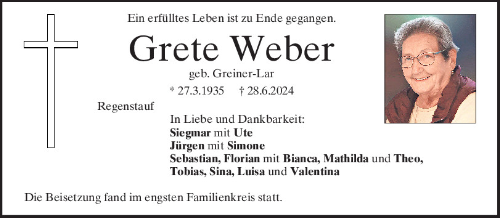 Hier finden Sie alle Traueranzeigen aus der Zeitung, die bisher für Grete Weber erschienen sind.