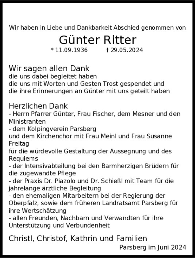 Hier finden Sie alle Traueranzeigen aus der Zeitung, die bisher für Günter Ritter erschienen sind.