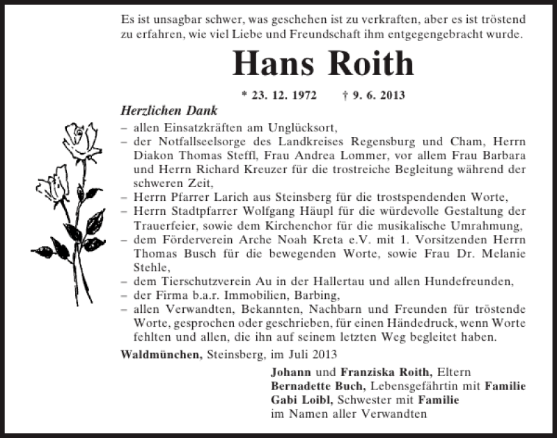 Hier finden Sie alle Traueranzeigen aus der Zeitung, die bisher für Hans Roith erschienen sind.