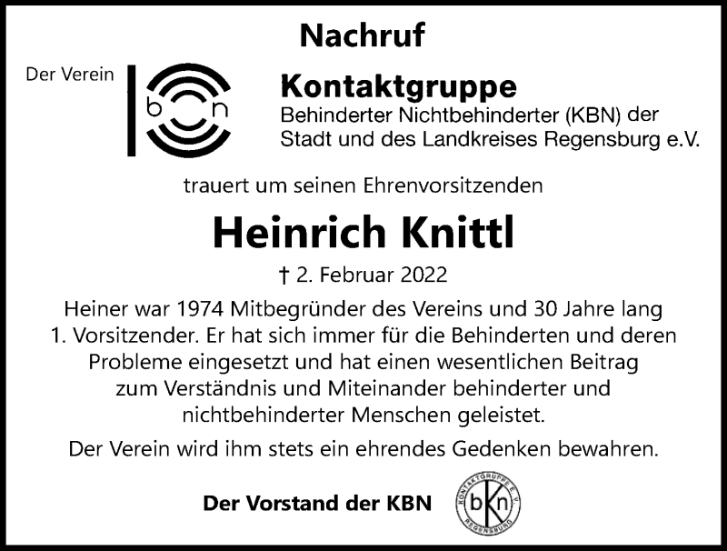Hier finden Sie alle Traueranzeigen aus der Zeitung, die bisher für Heinrich Knittl erschienen sind.