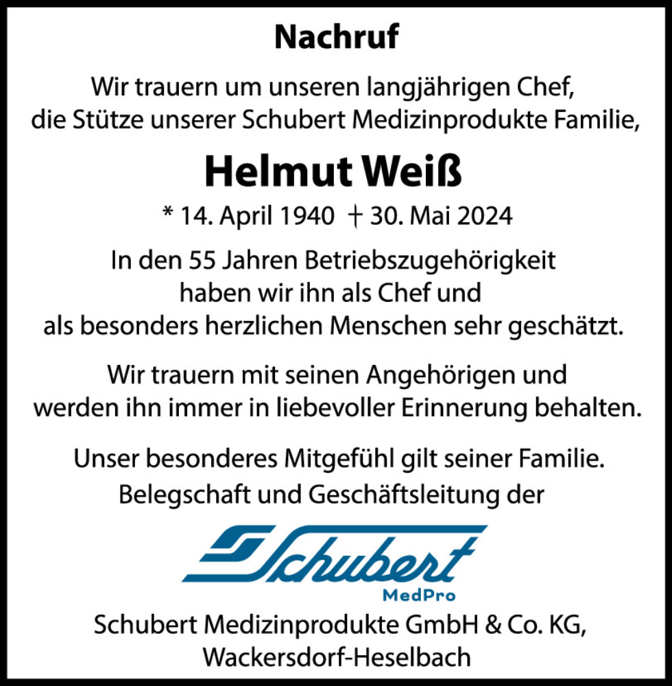 Hier finden Sie alle Traueranzeigen aus der Zeitung, die bisher für Helmut Weiß erschienen sind.