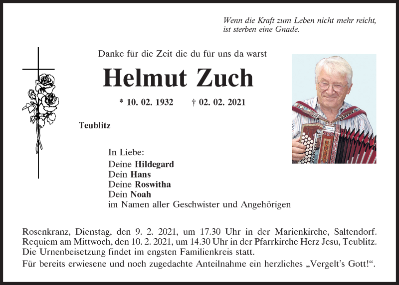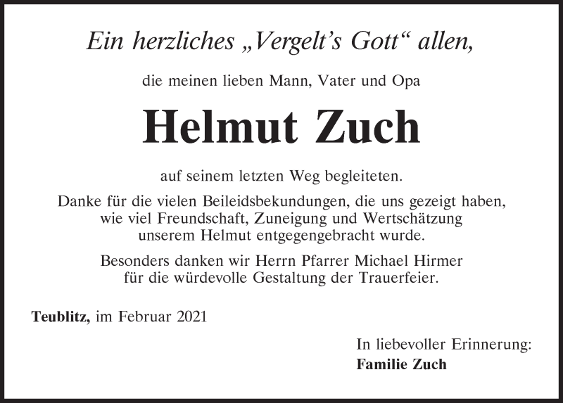 Hier finden Sie alle Traueranzeigen aus der Zeitung, die bisher für Helmut Zuch erschienen sind.