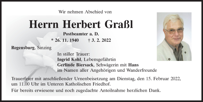 Hier finden Sie alle Traueranzeigen aus der Zeitung, die bisher für Herbert Graßl erschienen sind.