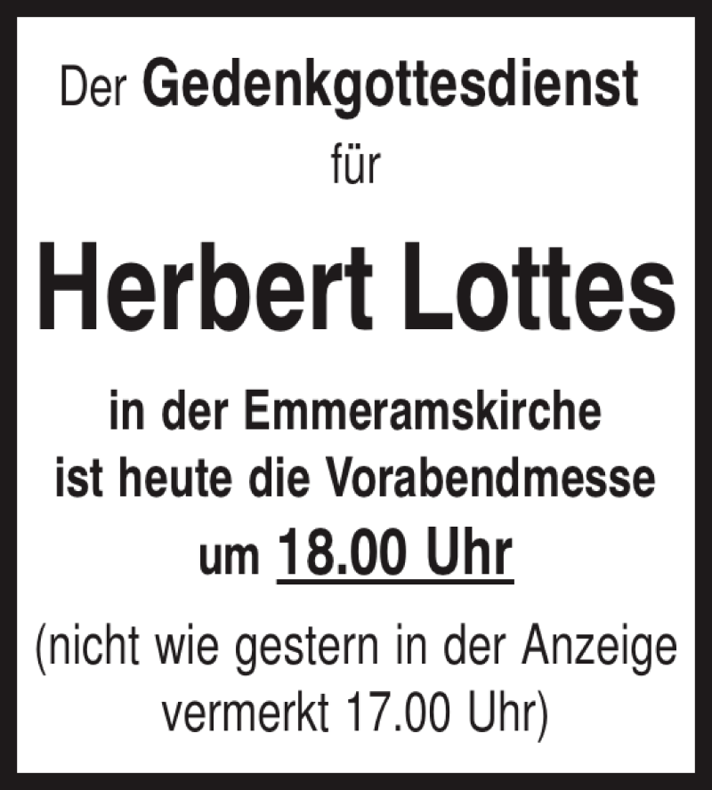 Hier finden Sie alle Traueranzeigen aus der Zeitung, die bisher für Herbert Lottes erschienen sind.