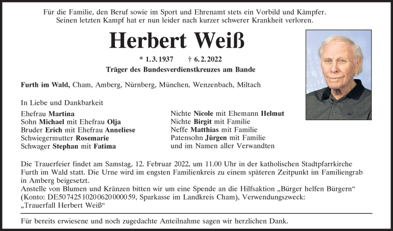 Hier finden Sie alle Traueranzeigen aus der Zeitung, die bisher für Herbert Weiß erschienen sind.