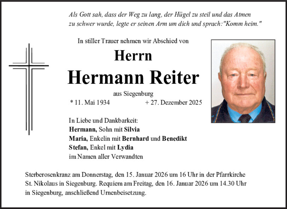 Hier finden Sie alle Traueranzeigen aus der Zeitung, die bisher für Hermann Reiter erschienen sind.