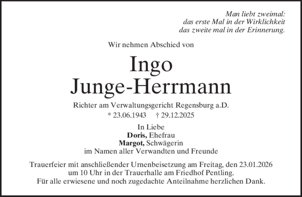 Hier finden Sie alle Traueranzeigen aus der Zeitung, die bisher für Ingo Junge-Herrmann erschienen sind.