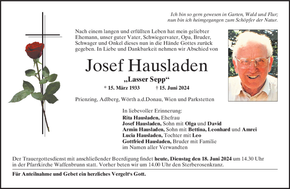 Hier finden Sie alle Traueranzeigen aus der Zeitung, die bisher für Josef Hausladen erschienen sind.