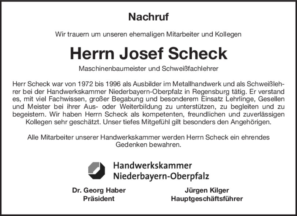 Hier finden Sie alle Traueranzeigen aus der Zeitung, die bisher für Josef Scheck erschienen sind.