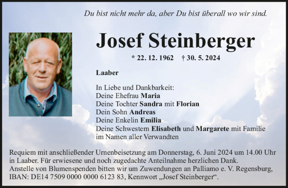 Hier finden Sie alle Traueranzeigen aus der Zeitung, die bisher für Josef Steinberger erschienen sind.