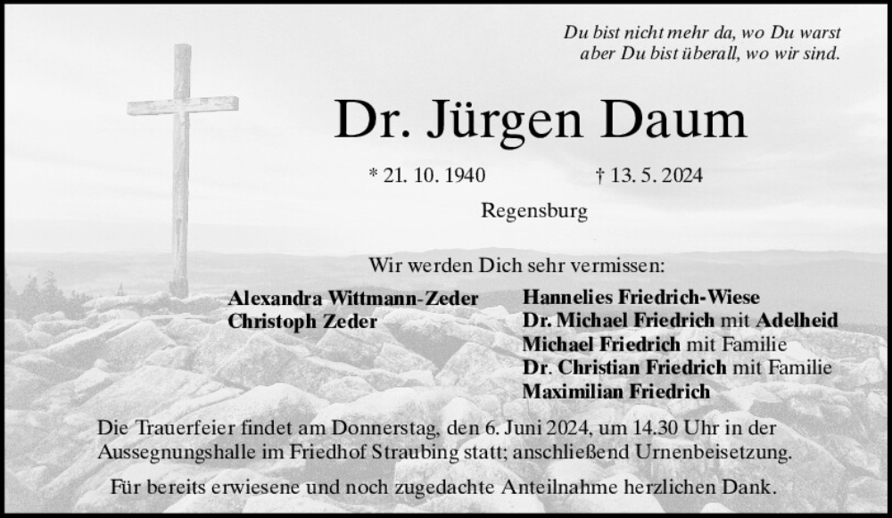 Hier finden Sie alle Traueranzeigen aus der Zeitung, die bisher für Jürgen Daum erschienen sind.