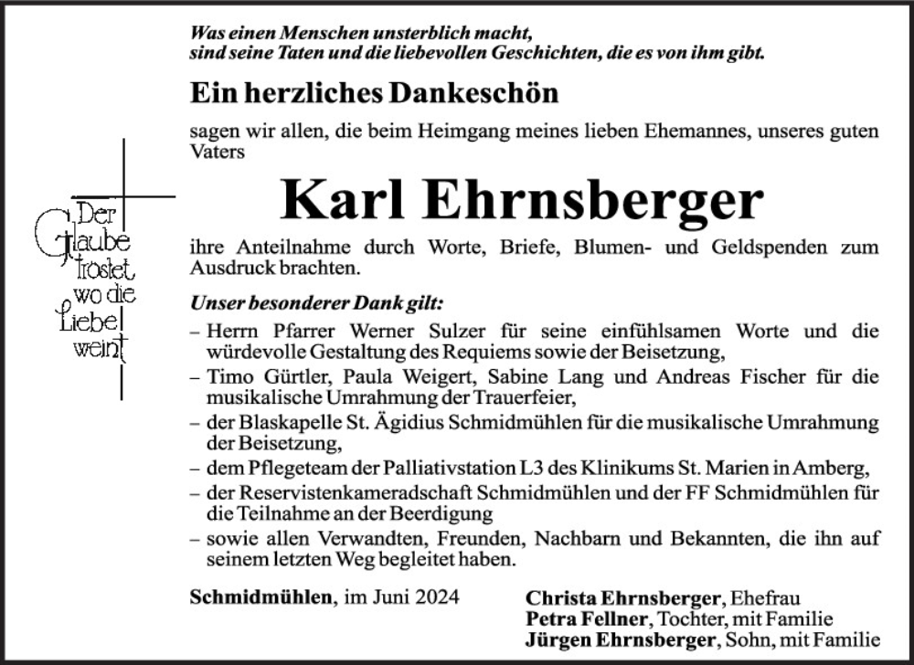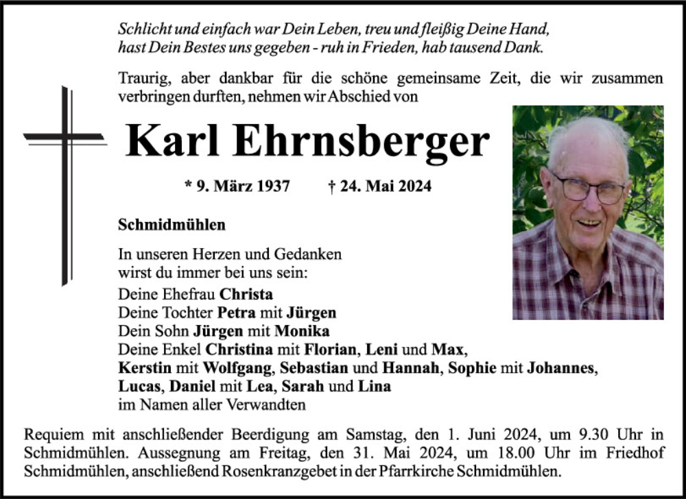 Hier finden Sie alle Traueranzeigen aus der Zeitung, die bisher für Karl Ehrnsberger erschienen sind.