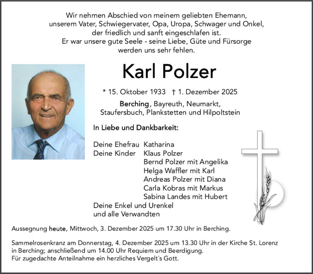 Hier finden Sie alle Traueranzeigen aus der Zeitung, die bisher für Karl Polzer erschienen sind.