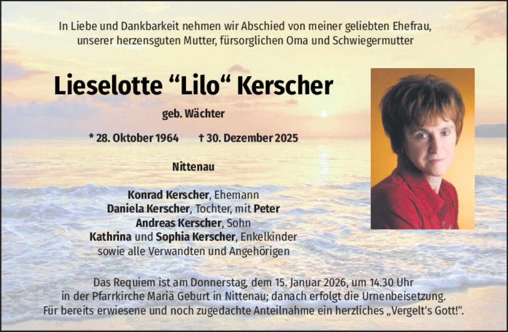 Hier finden Sie alle Traueranzeigen aus der Zeitung, die bisher für Lieselotte Kerscher erschienen sind.
