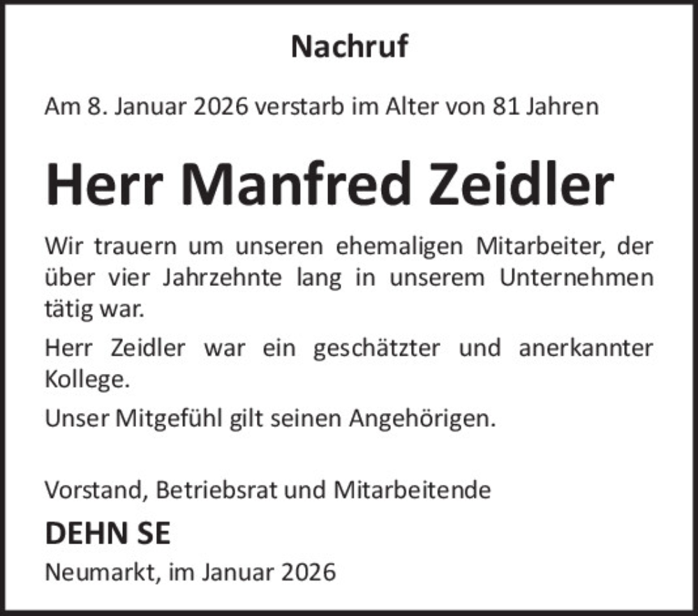 Hier finden Sie alle Traueranzeigen aus der Zeitung, die bisher für Manfred Zeidler erschienen sind.