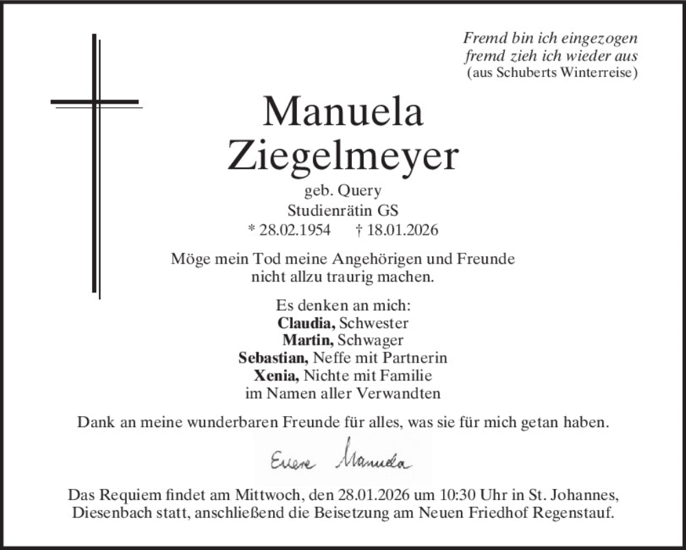 Hier finden Sie alle Traueranzeigen aus der Zeitung, die bisher für Manuela Ziegelmeyer erschienen sind.