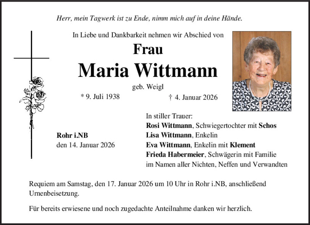 Hier finden Sie alle Traueranzeigen aus der Zeitung, die bisher für Maria Wittmann erschienen sind.