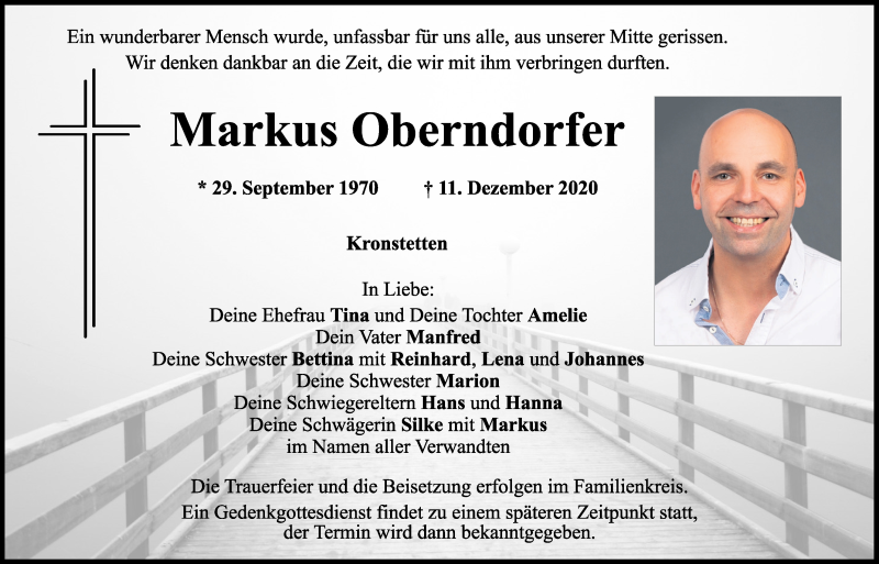 Hier finden Sie alle Traueranzeigen aus der Zeitung, die bisher für Markus Oberndorfer erschienen sind.