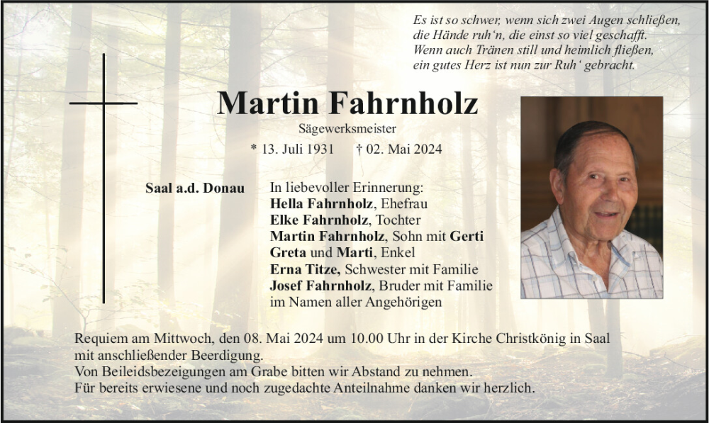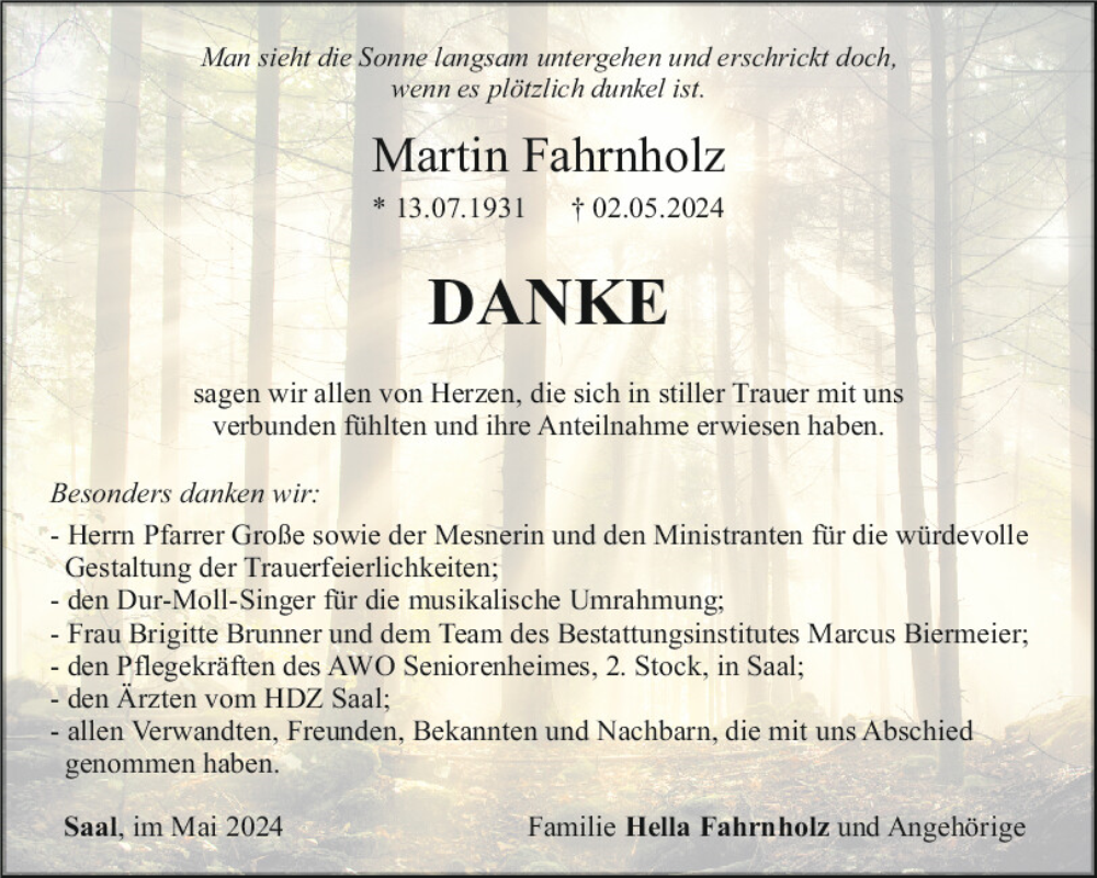 Hier finden Sie alle Traueranzeigen aus der Zeitung, die bisher für Martin Fahrnholz erschienen sind.