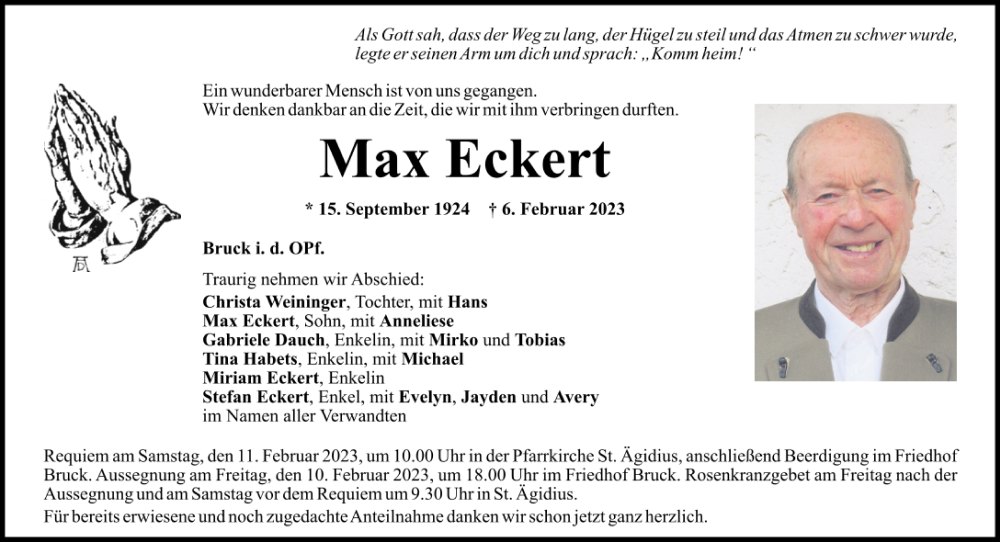 Hier finden Sie alle Traueranzeigen aus der Zeitung, die bisher für Max Eckert erschienen sind.
