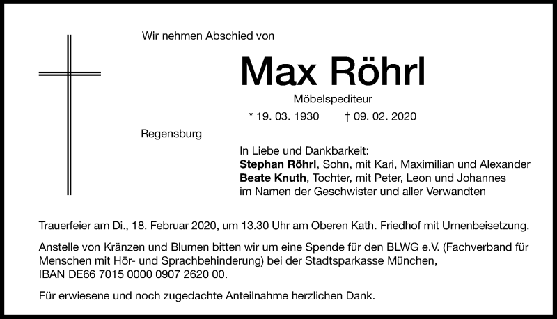 Hier finden Sie alle Traueranzeigen aus der Zeitung, die bisher für Max Röhrl erschienen sind.