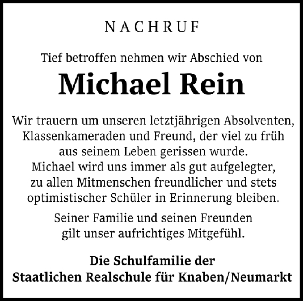 Hier finden Sie alle Traueranzeigen aus der Zeitung, die bisher für Michael Rein erschienen sind.