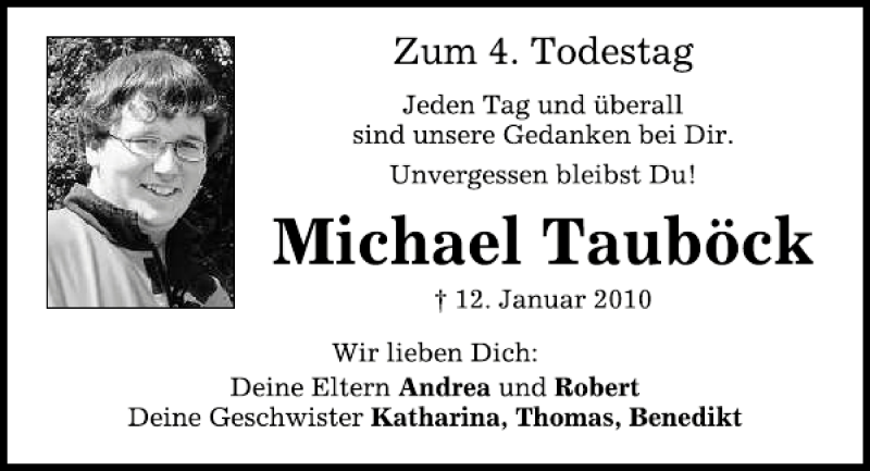 Hier finden Sie alle Traueranzeigen aus der Zeitung, die bisher für Michael Tauböck erschienen sind.