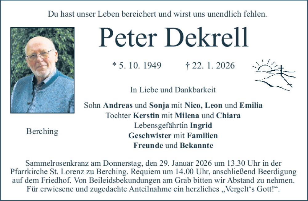 Hier finden Sie alle Traueranzeigen aus der Zeitung, die bisher für Peter Dekrell erschienen sind.