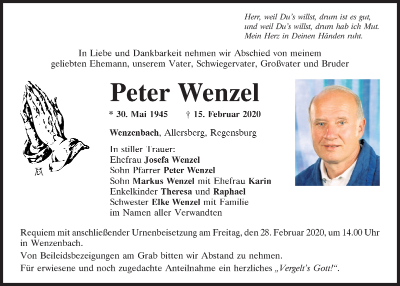 Hier finden Sie alle Traueranzeigen aus der Zeitung, die bisher für Peter Wenzel erschienen sind.