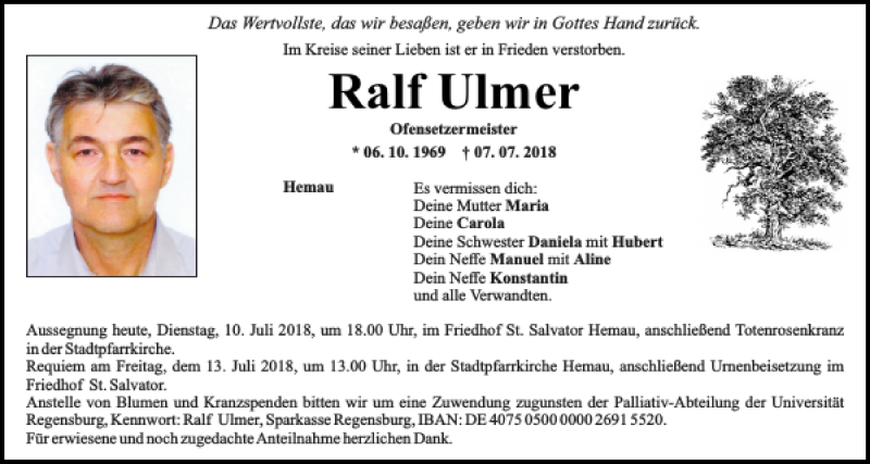 Hier finden Sie alle Traueranzeigen aus der Zeitung, die bisher für Ralf Ulmer erschienen sind.