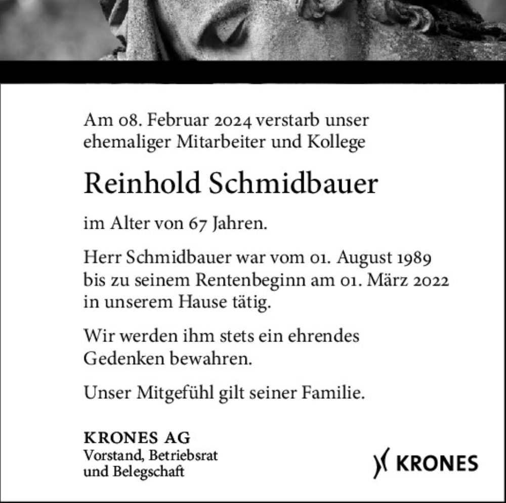 Hier finden Sie alle Traueranzeigen aus der Zeitung, die bisher für Reinhold Schmidbauer erschienen sind.