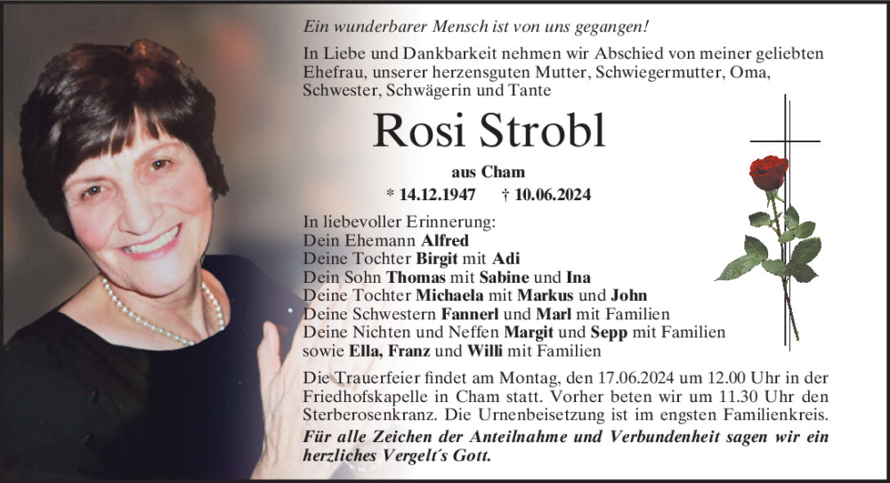 Hier finden Sie alle Traueranzeigen aus der Zeitung, die bisher für Rosi Strobl erschienen sind.