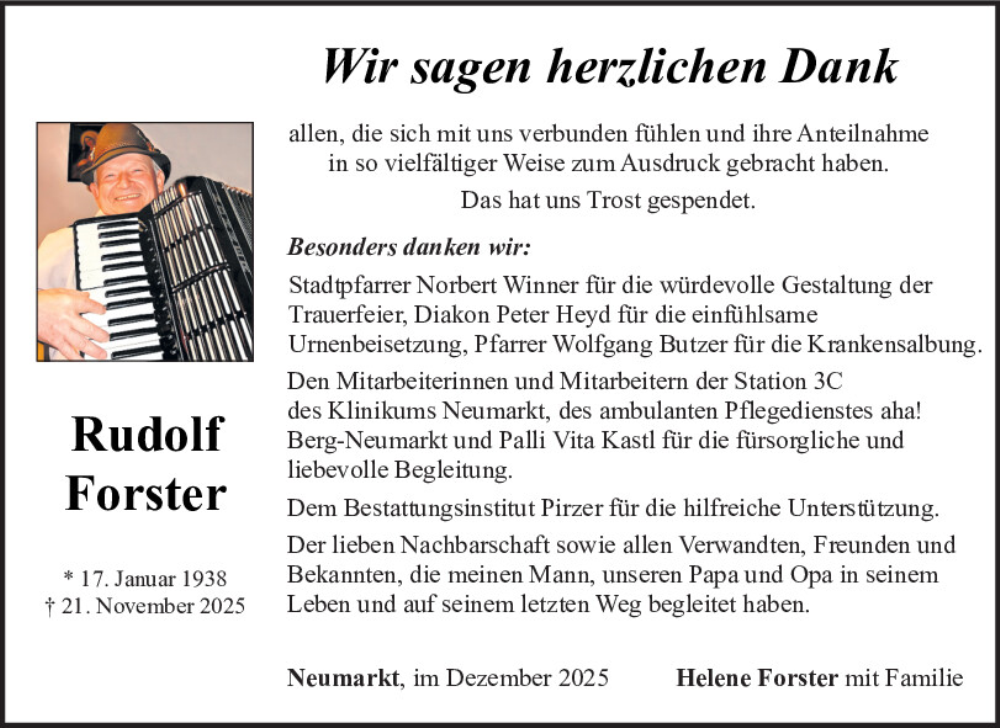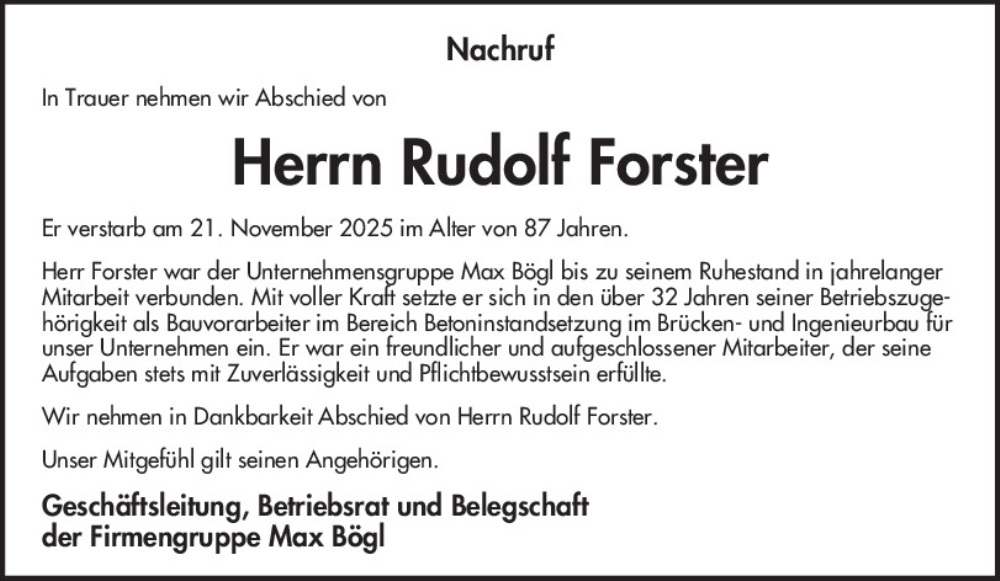 Hier finden Sie alle Traueranzeigen aus der Zeitung, die bisher für Rudolf Forster erschienen sind.