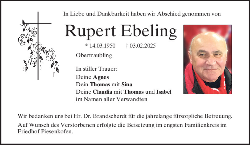 Hier finden Sie alle Traueranzeigen aus der Zeitung, die bisher für Rupert Ebeling erschienen sind.