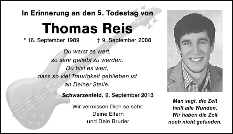 Hier finden Sie alle Traueranzeigen aus der Zeitung, die bisher für Schwarzenfeld Thomas Reis erschienen sind.