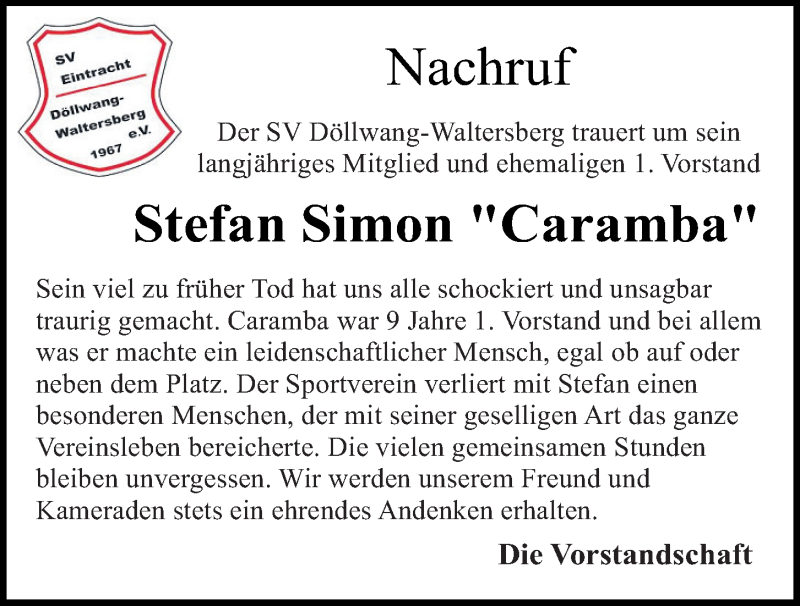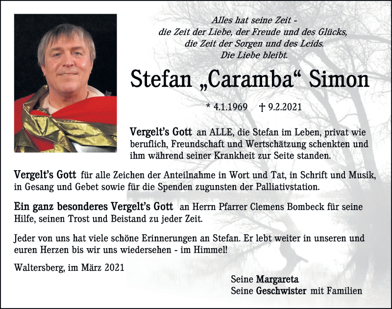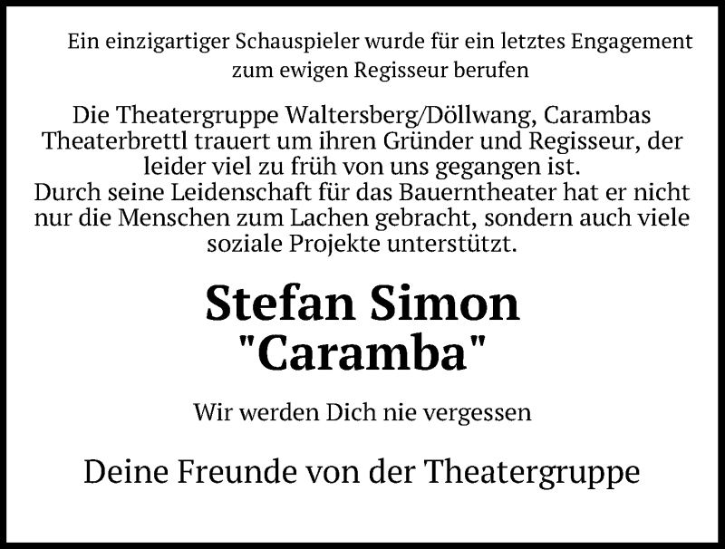 Hier finden Sie alle Traueranzeigen aus der Zeitung, die bisher für Stefan Simon erschienen sind.
